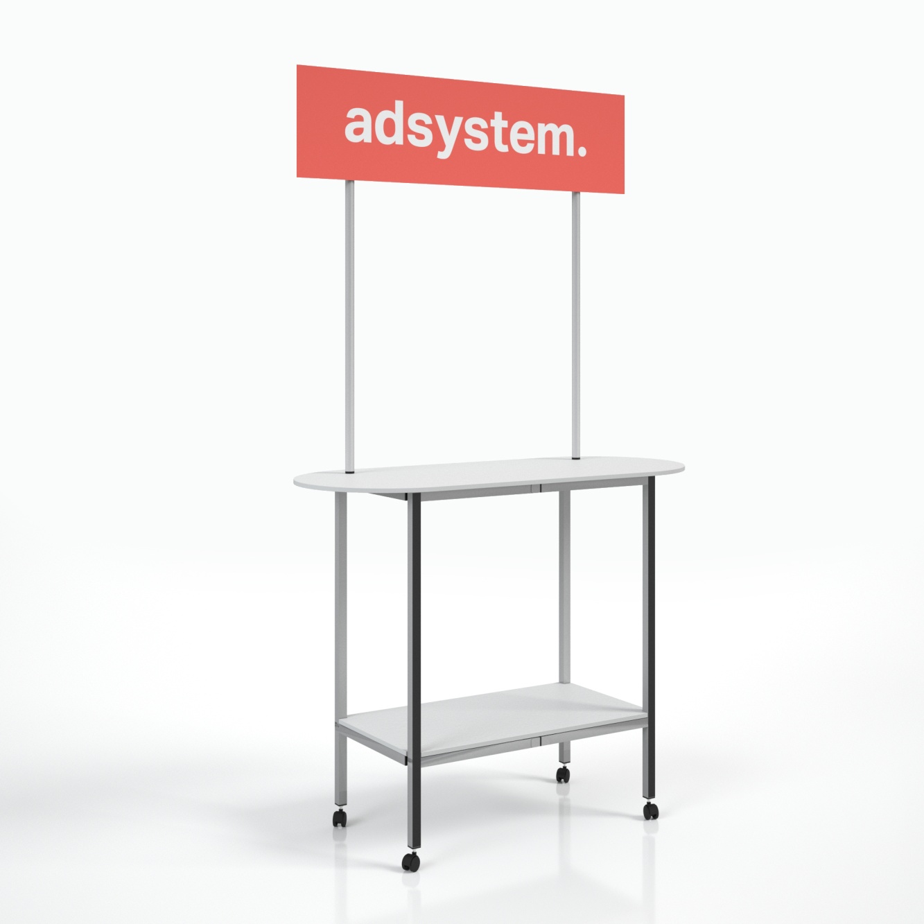 adBox Elypse ist ein modernes Promotion-Stand. Dank seiner Konstruktion auf Rädern und dem blitzschnellen Aufbau ist es die ideale Lösung für Verkostungen und Werbeaktionen in Geschäften und bei Events.