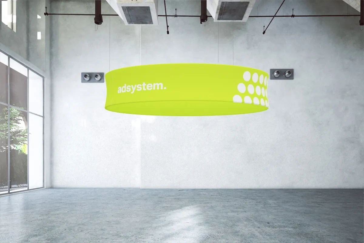 Vario Ringfloat ist ein runder Werbeaufhänger, der dank seiner hängenden Konstruktion effektiv Aufmerksamkeit erregt und Ihre Marke von der Konkurrenz abhebt. Ideal für verschiedene Anwendungen, bietet er hervorragende Sichtbarkeit und Ästhetik. Das Produkt besteht aus einem Aluminiumrahmen, der mit Schnappverschlüssen verbunden ist, und einem Textildruck.