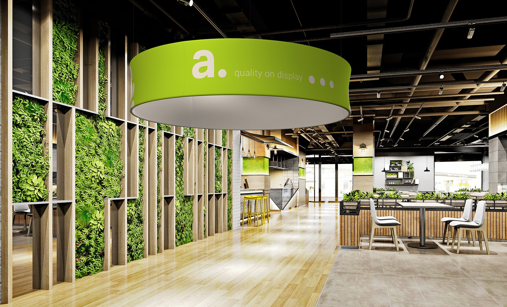 Einkaufszentren: Deckensysteme ziehen die Aufmerksamkeit der Kunden auf sich und lenken sie gezielt in bestimmte Bereiche.