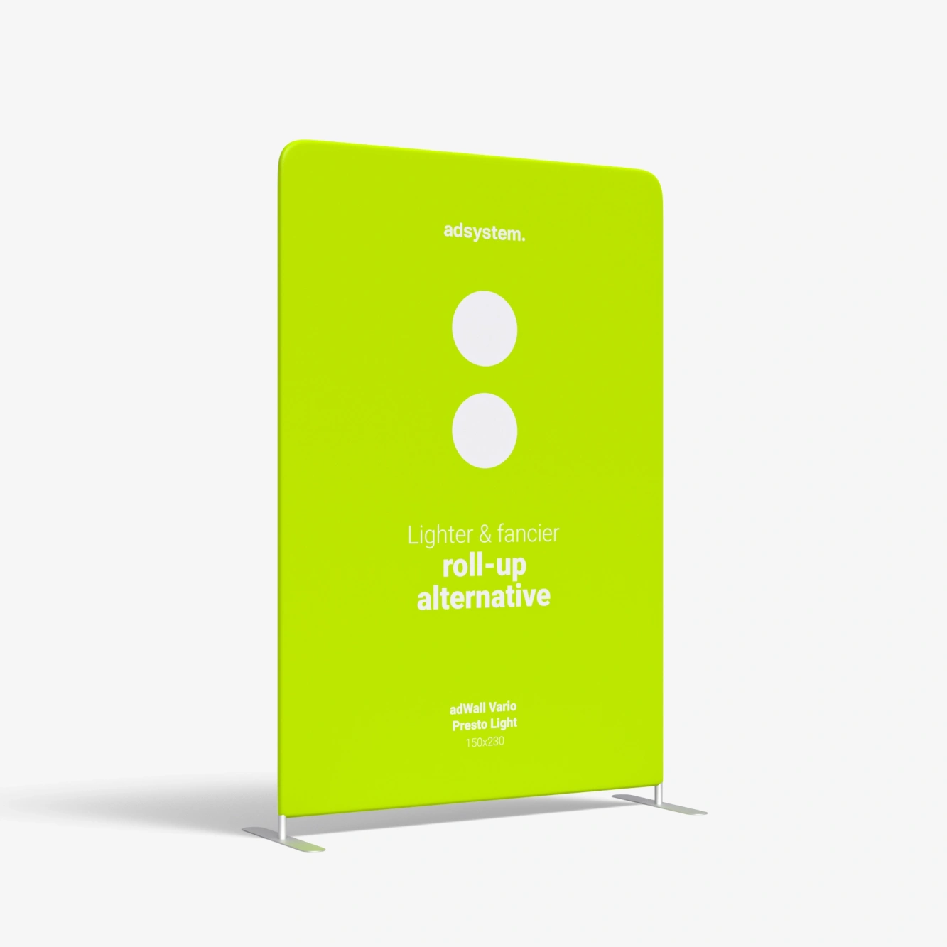 adWall Presto Light ist ein Textilbanner, mit dem Sie Ihre Marke präsentieren können. Sie können ein Logo oder eine Firmen-Grafik auf dem Druck platzieren und so die Aufmerksamkeit der Kunden auf sich ziehen. Das Produkt dient als Alternative zu einem Roll-up bei Ausstellungsevents, Messen oder Geschäftstreffen. Es zeichnet sich durch eine leichte Konstruktion und einen hochwertigen Druck aus.
