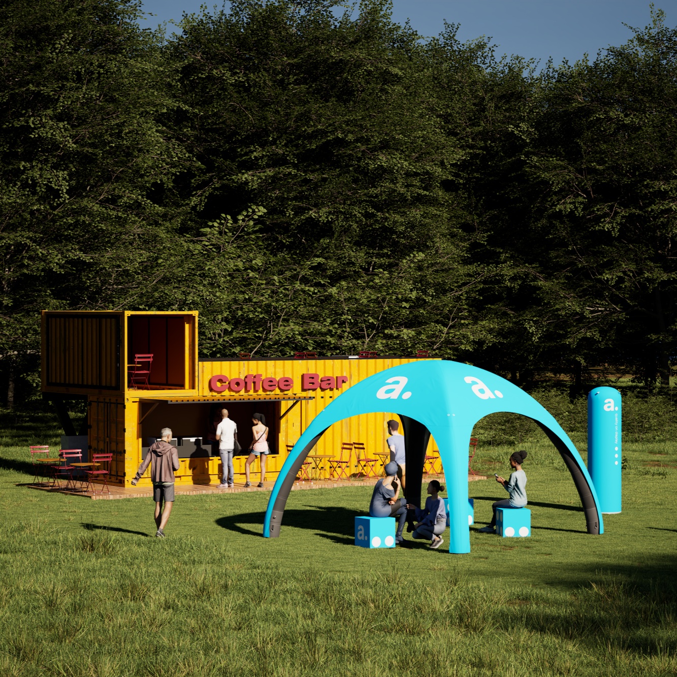 Das Chill Zone Set für Außenwerbung kannst du bei der Organisation von Veranstaltungen im Freien einsetzen. Mit den Produkten dieses Sets kannst du eine bequeme Ruhezone oder einen Treffpunkt für Besucher einrichten. Darüber hinaus kannst du mit personalisierten Grafiken, die wir auf den Produkten anbringen, deine Marke hervorheben und die Aufmerksamkeit der Kunden auf dich ziehen. Folglich werden Werbeaktionen mit dem Chill Zone Set dir helfen, das positive Image deiner Marke im Bewusstsein der Zielgruppe zu stärken.