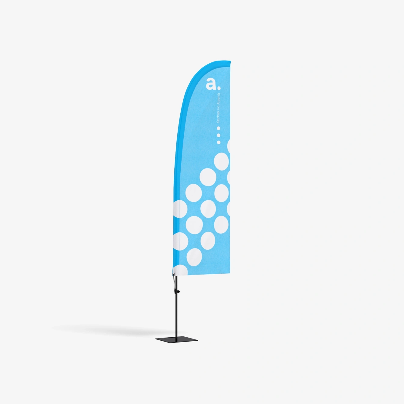 AdFlag Blade ist eine maßgeschneiderte Fahne, die Sie für Werbezwecke sowie zur Kennzeichnung von Veranstaltungen oder Gebäuden verwenden können. Auf das textile Material drucken wir Ihr Logo oder andere Firmensymbole, wodurch Sie Ihre Werbebotschaft stärken und die Marke für die Empfänger leicht erkennbar machen. Das Set umfasst eine Fahne und einen Mast.