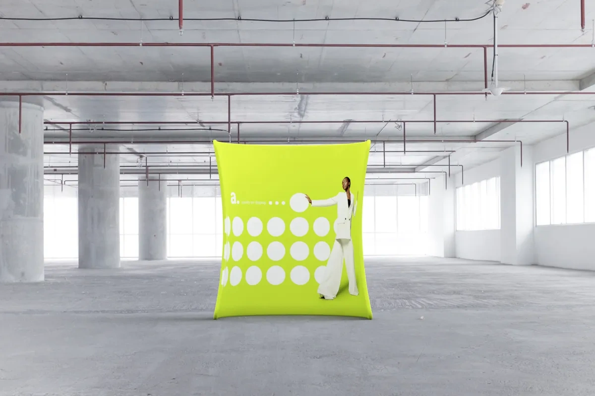 adWall Vario C-wall is a compact trade show booth that excels in creating mini stands, delineating promotional spaces, and at conferences.