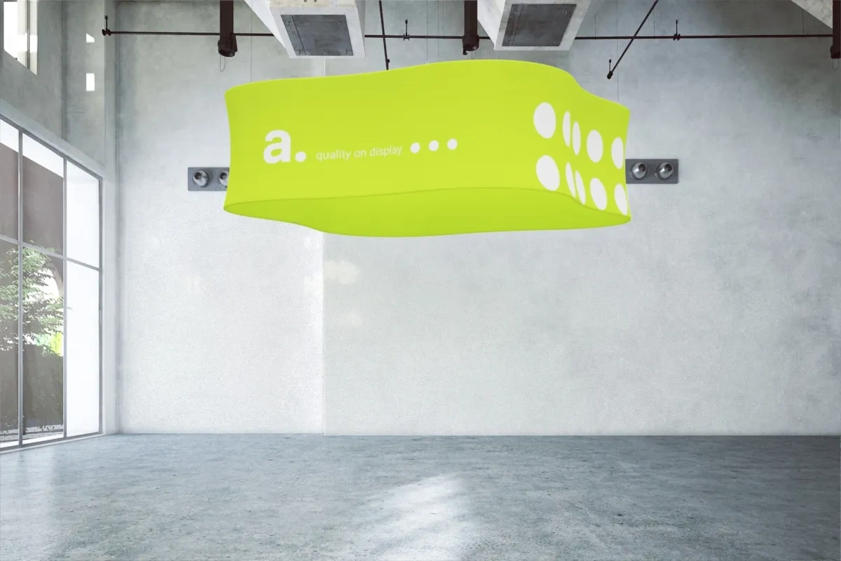 Ruhezonen und Lounge-Bereiche auf Messen: ein Kleeblatt als Hängesystem schafft eine freundliche und entspannte Atmosphäre.