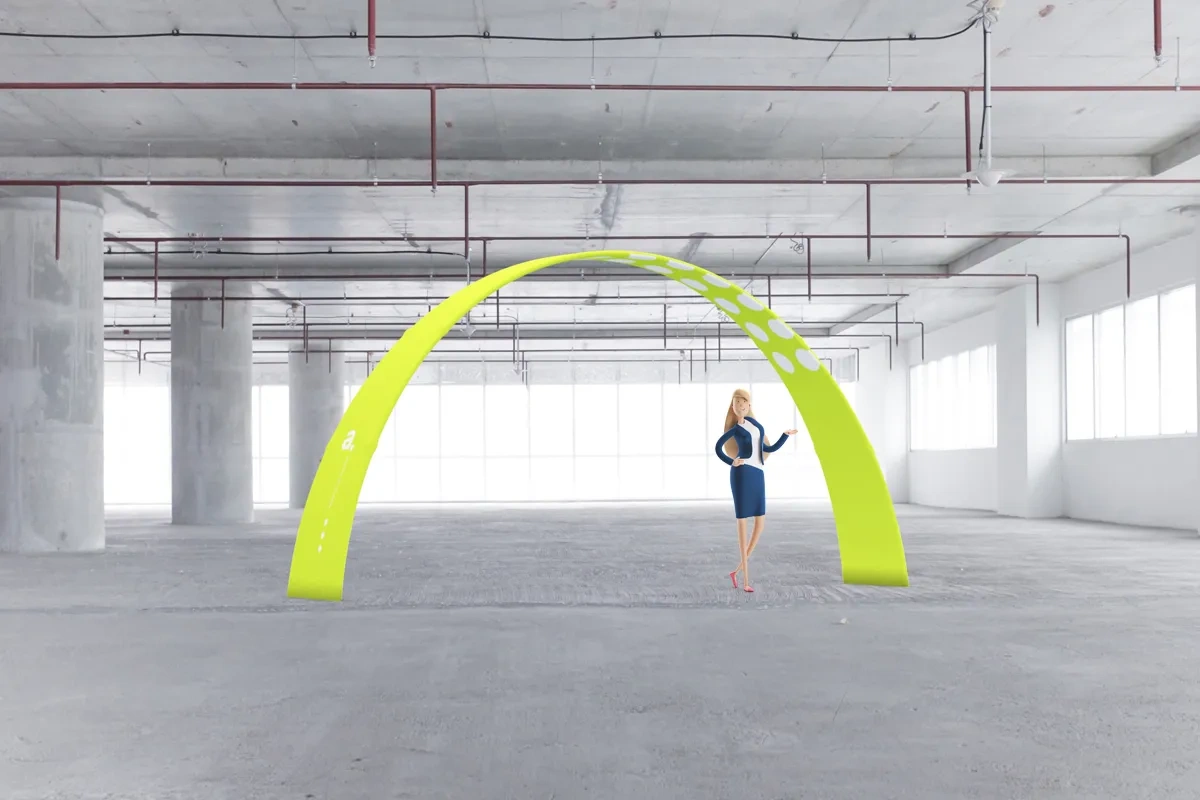 adWall Vario Arch A ist ein Textilbogen in Form eines Bogens. Er eignet sich hervorragend als auffällige Eingangsmarkierung für Messen, Branchenevents und andere Veranstaltungen.
