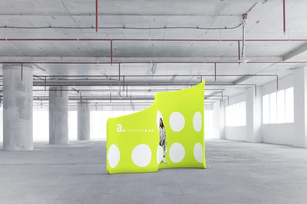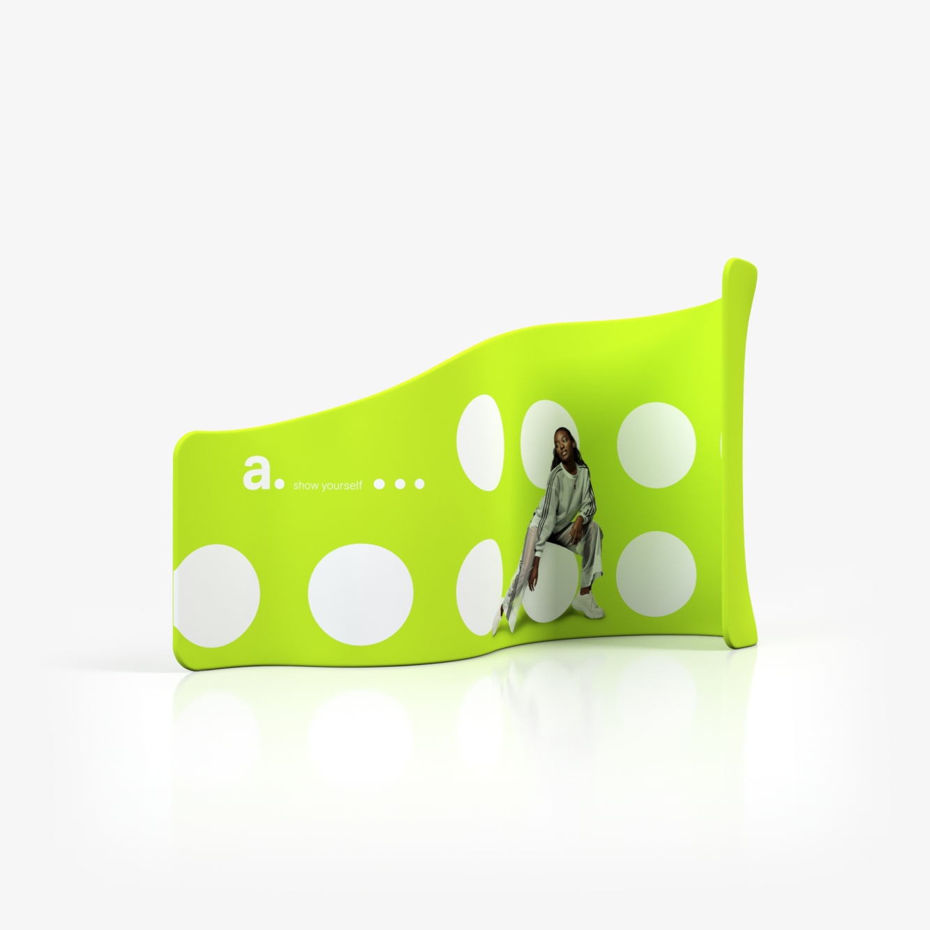 adWall Vario Twist è una parete espositiva a spirale che trasforma il messaggio promozionale in unesperienza indimenticabile. Che la utilizzi come sfondo, elemento decorativo o punto centrale della presentazione, questa parete unica aggiunge originalità al tuo marchio.