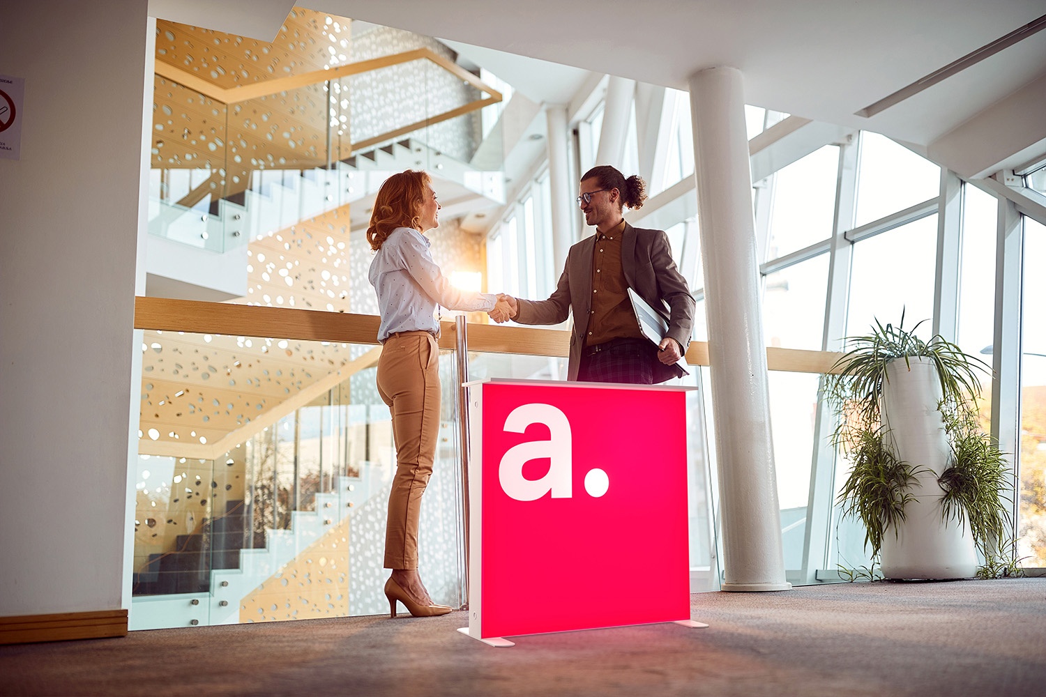 adTribune SEGO ist ein eleganter beleuchteter Tresen. Als Teil eines Messestandes eignet er sich ideal für Veranstaltungen, Messen, Konferenzen oder Geschäftstreffen.