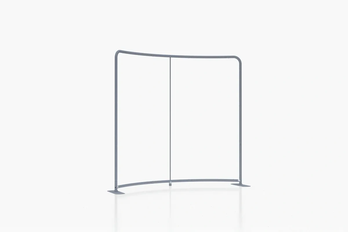 adWall Vario Gebogen Premium ist eine gebogene Messewand, die Ihre Werbemaßnahmen unterstützt. Sie können sie bei Werbeaktionen, Konferenzen oder Branchentreffen einsetzen. Für die Konstruktion haben wir Aluminiumprofile mit einer Breite von 43 mm verwendet, und den Druck mit Ihrer personalisierten Grafik fertigen wir auf Textilmaterial an.