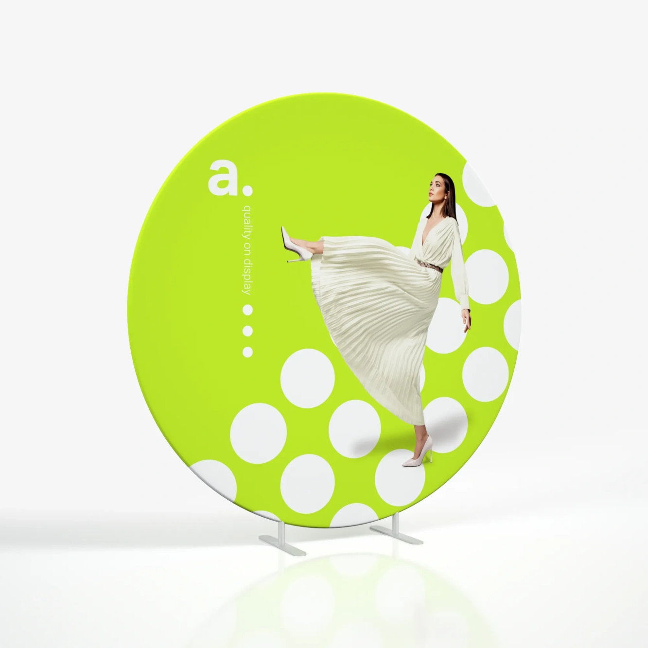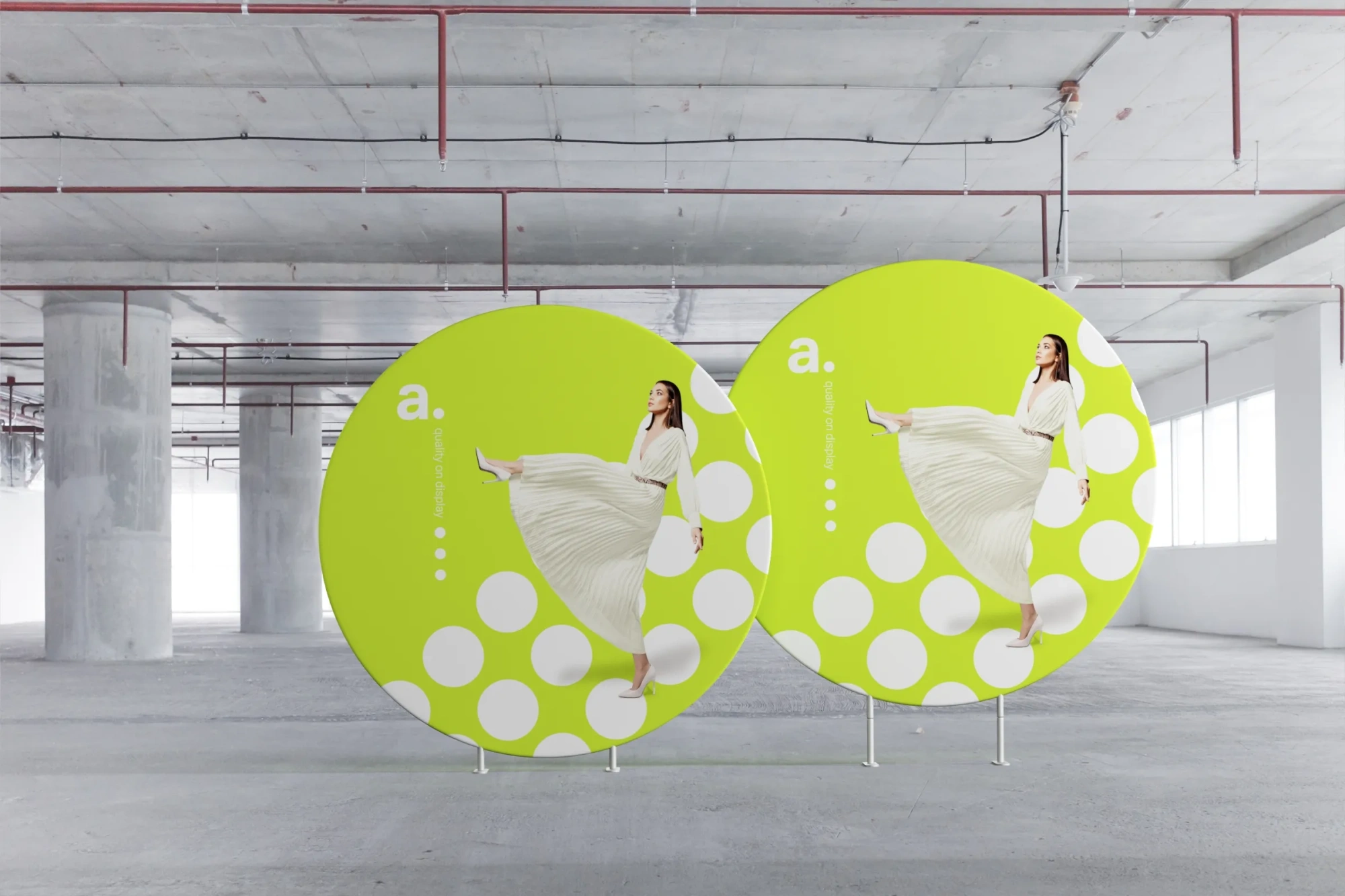 Werbung im Einkaufszentrum: Die runde Form und die große Werbefläche machen die Werbung einprägsamer für die Kunden.