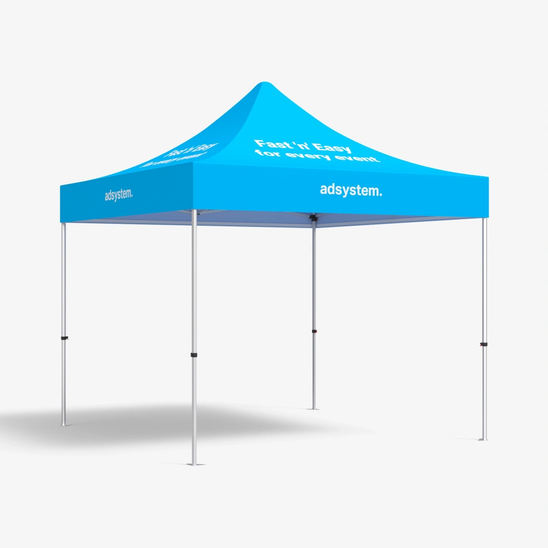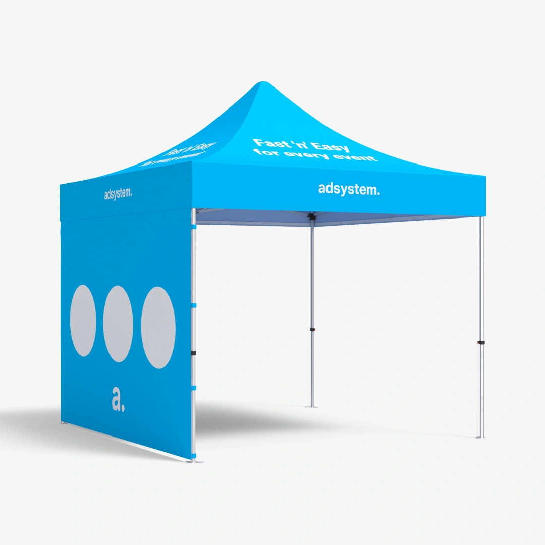 Namiot handlowy adTent Express to uniwersalny produkt, który znajdzie zastosowanie podczas najróżniejszych eventów zarówno na świeżym powietrzu jak i wewnątrz budynków. Namiot ekspresowy z logo będzie dobrym wyborem podczas stabilnych warunków pogodowych, gdy nie wieje zbyt silny wiatr, ani nie pada ulewny deszcz.